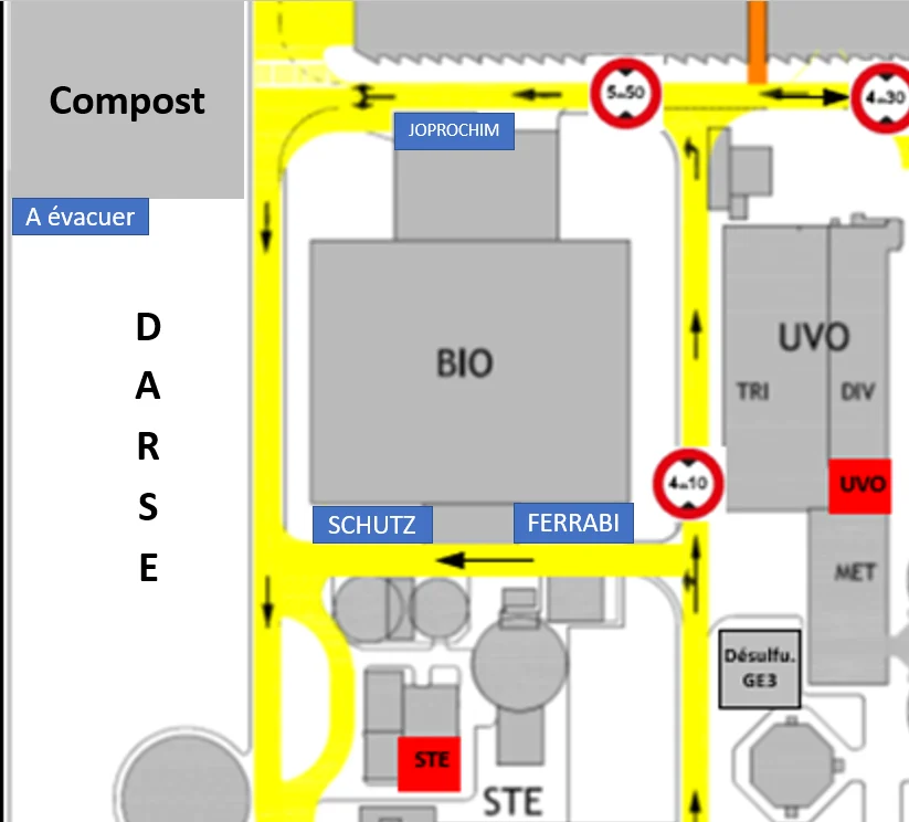 Les autres cubitainers ne respectant pas les conditions de consignation ou qui ne sont pas consignables, doivent être évacués pour élimination. Ces derniers sont à stocker au fond de la DARSE (voir schéma, zone « A évacuer »)). La présence des bouchons reste néanmoins obligatoire.